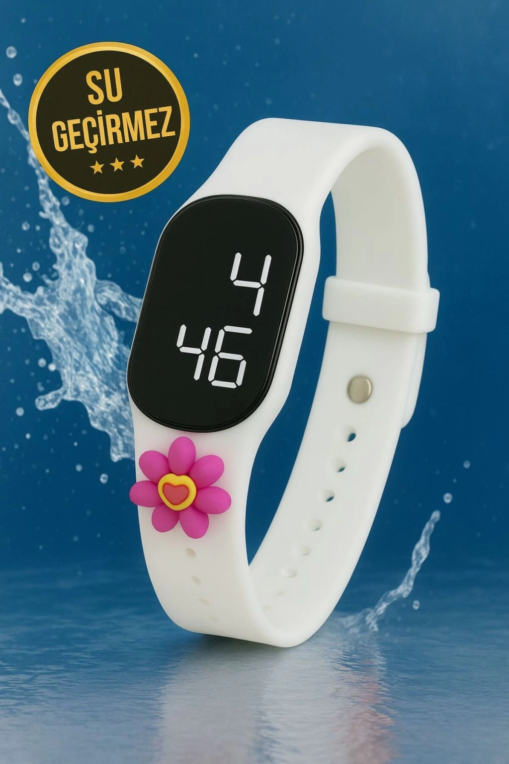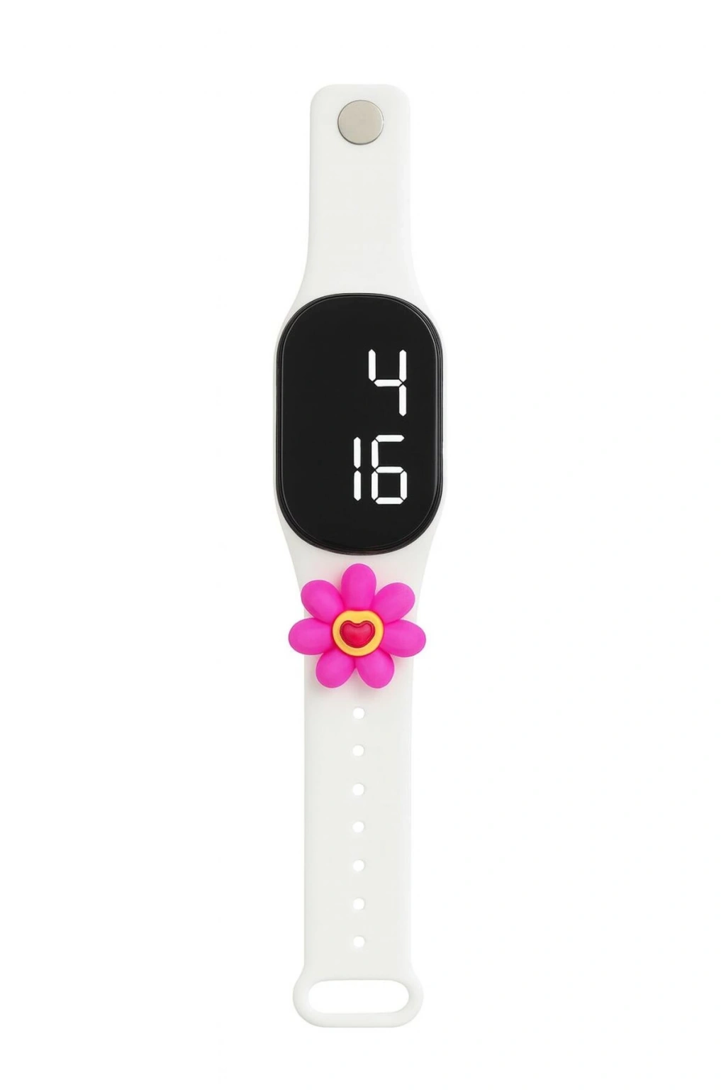 Rodium Çocuk Kol Saati Dokunmatik Led Su Geçirmez Ve Bileklik Beyaz Çiçek Fuşya (Akıllı Saat Değildir)