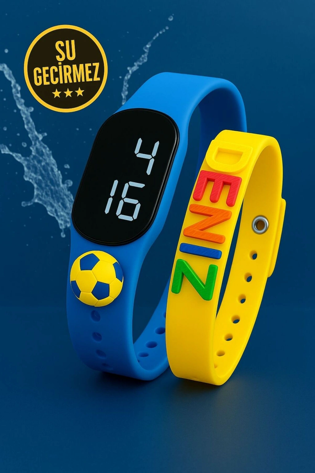 Rodium Dokunmatik Led Çocuk Kol Saati & Bileklik İkili Set Sarıcı Lacivert Taraftar (AKILLI SAAT DEĞİLDİR)