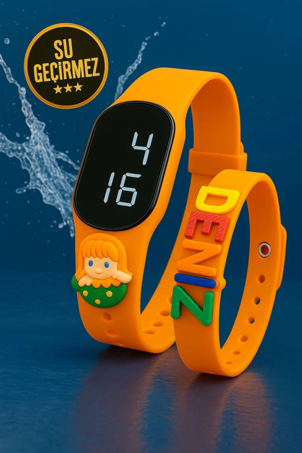 Rodium Dokunmatik Led Çocuk Kol Saati & Bileklik İkili Set Turuncu Deniz Kızı (AKILLI SAAT DEĞİLDİR)