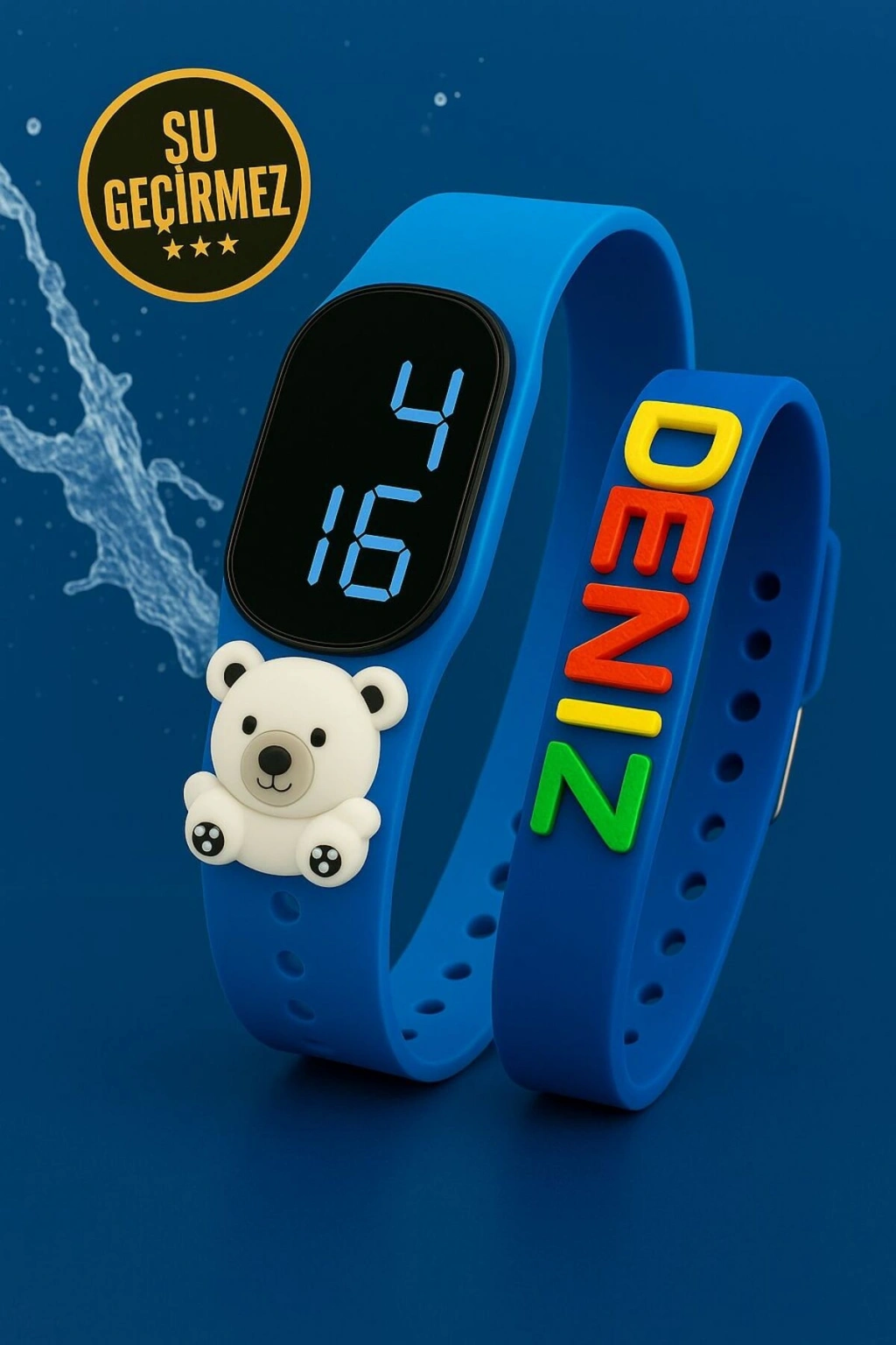 Rodium Dokunmatik Led Çocuk Kol Saati & Bileklik İkili Set Mavi Ayıcık (AKILLI SAAT DEĞİLDİR)