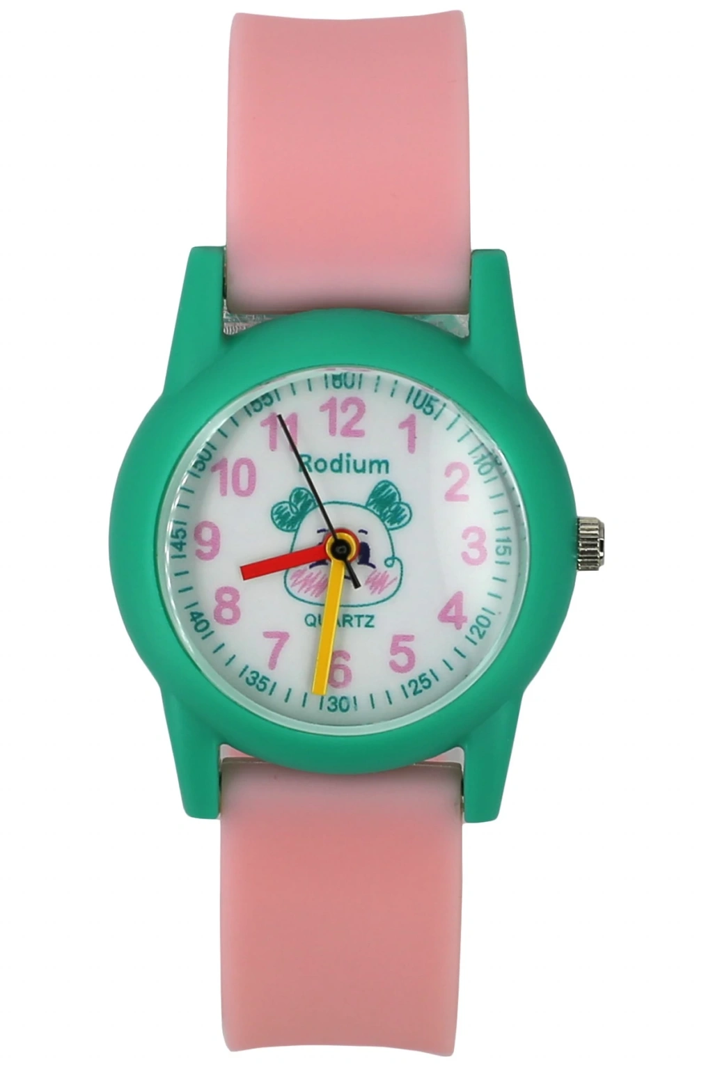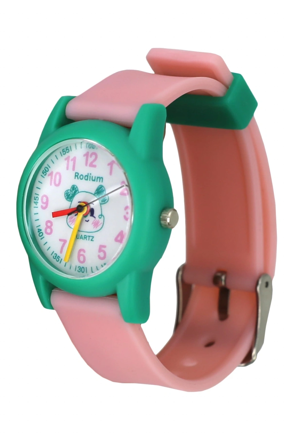 Rodium Çocuk Kol Saati Su Geçirmez Analaog Pembe-Yeşil (2211)