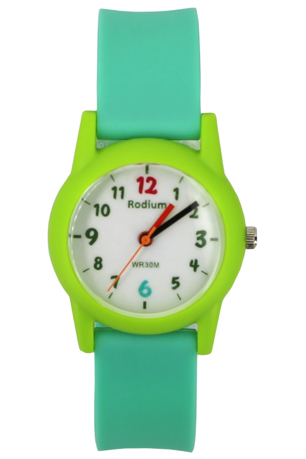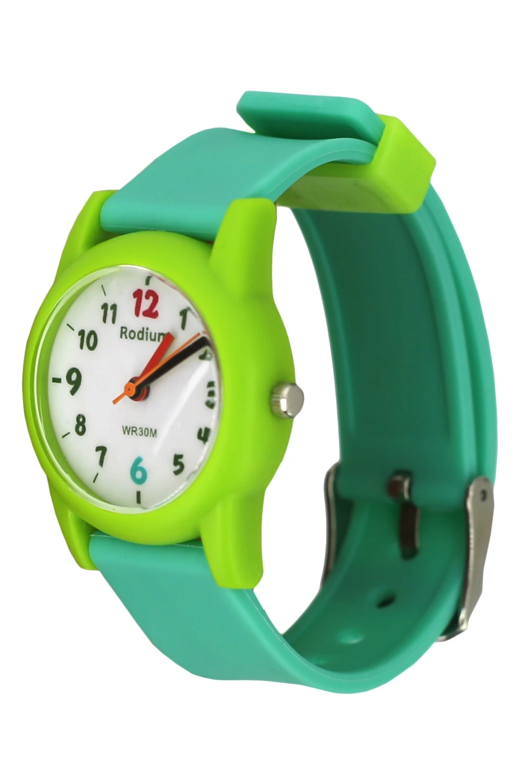 Quartz mekanizması sayesinde zamanı hassas ve doğru bir şekilde takip eder, çocukların günlük aktivitelerini kolayca planlamalarına yardımcı olur; - Mineral cam tipi, çizilmelere karşı dayanıklılık sağlar ve saatin ekranını korur; böylece çocuklar saatin ömrünü uzatır; - Düz cam şekli, saatin şık ve modern bir görünüm kazanmasını sağlar ve her türlü yüz tipine uyum sağlar; - 5 atm su geçirmezlik özelliği ile çocuklar su sıçramalarına karşı endişe etmeden saati kullanabilirler; yağmurda, çamurlu havalarda bile saatinizi güvende tutabilirsiniz; - Silikon kordon materyali, esnek yapısıyla çocukların bileklerine rahatça uyum sağlar ve uzun süreli kullanımda bile konfor sunar; - Yeşil kasa rengi ile dikkat çekici bir stil oluştururken, çocukların tarzını yansıtır; - Çocuklar için özel olarak tasarlanmış bu saat, yaş grubuna uygun ergonomik özellikleriyle;