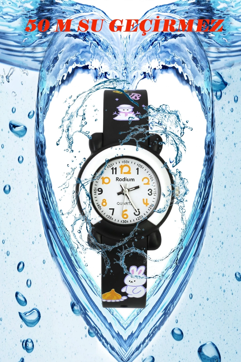 Rodium Çocuk Kol Saati Su Geçirmez Analaog Siyah-4 (2217) (Siyah)