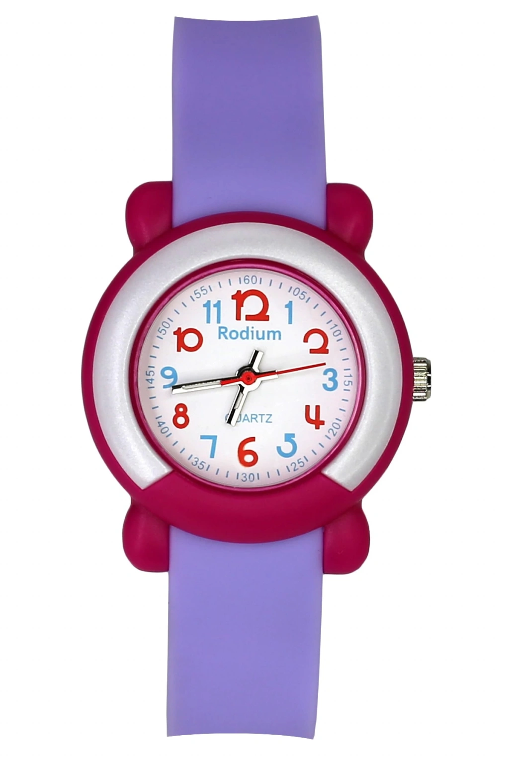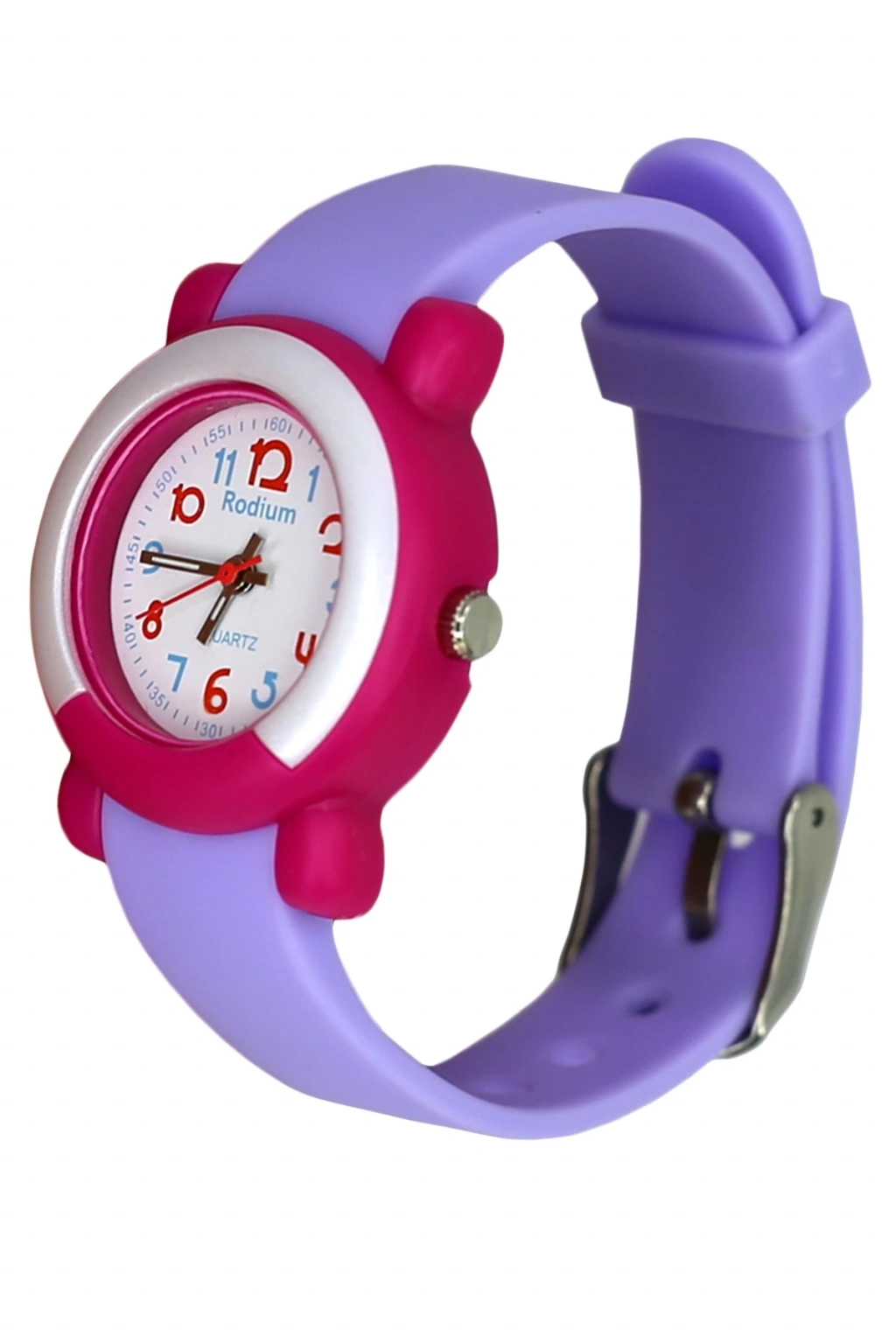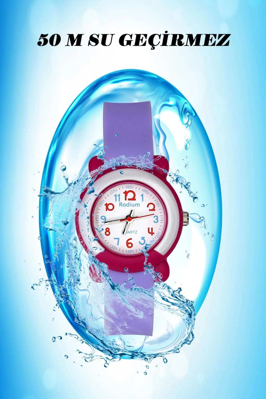 Rodium Çocuk Kol Saati Su Geçirmez Analaog Lila (8846) (Fuşya Kasa Kordon)