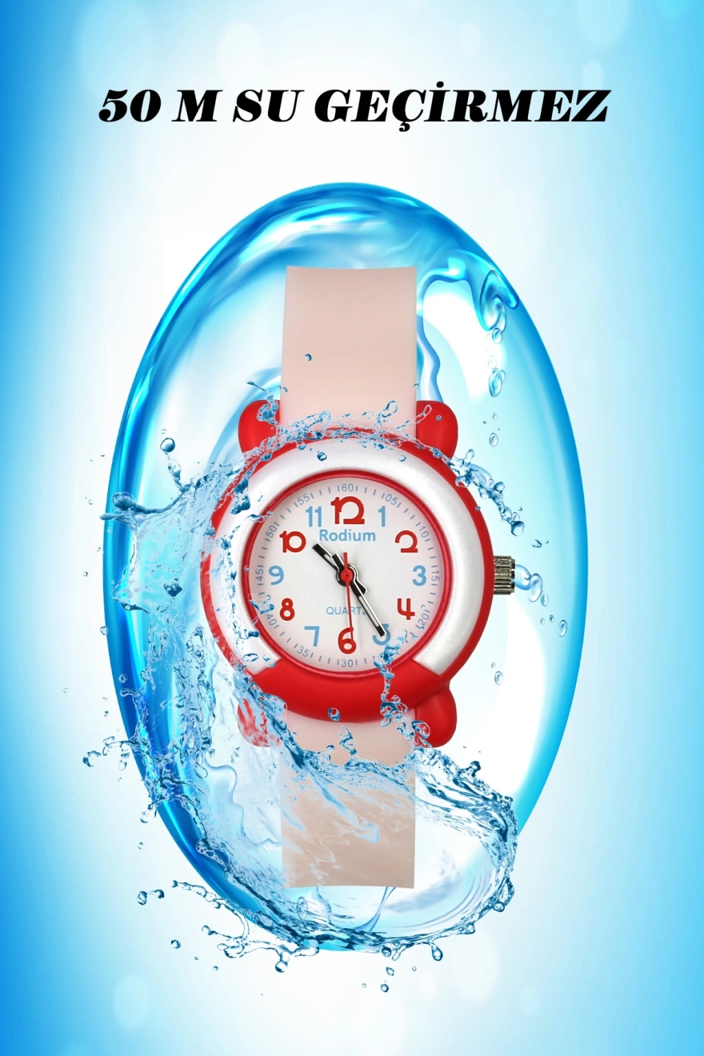 Rodium Çocuk Kol Saati Su Geçirmez Analaog Pembe (8846) (Kırmızı Kasa Kordon)