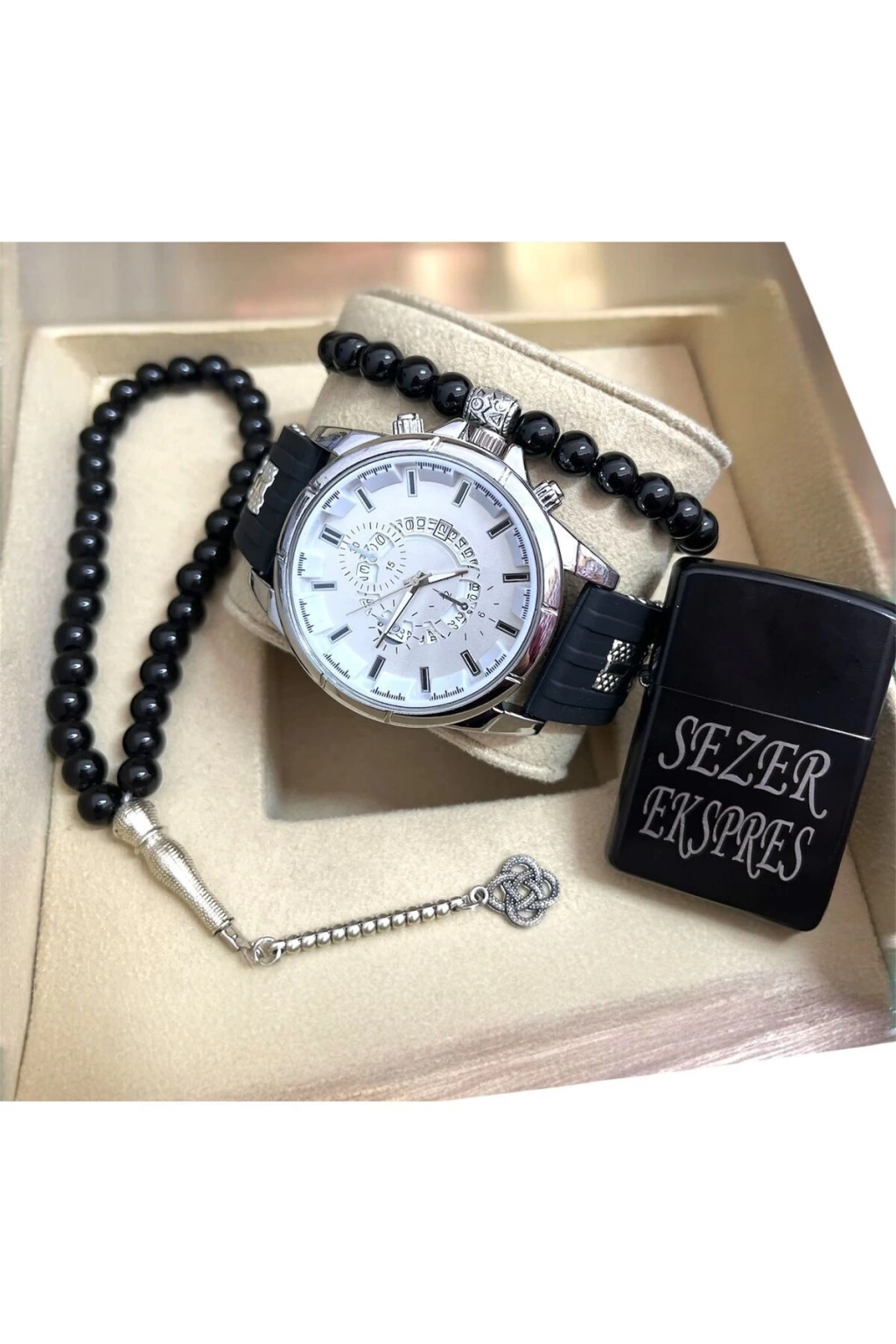 KİŞİYE ÖZEL 4 PARÇA ERKEK SAAT SETİ.; SAAT,ÇAKMAK,BİLEKLİK,TESBİH.