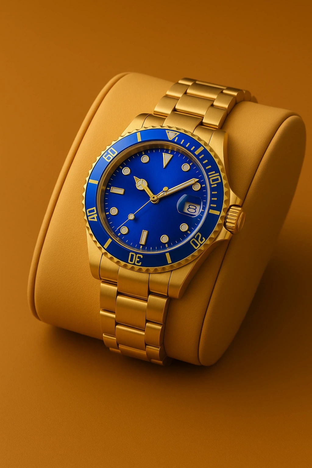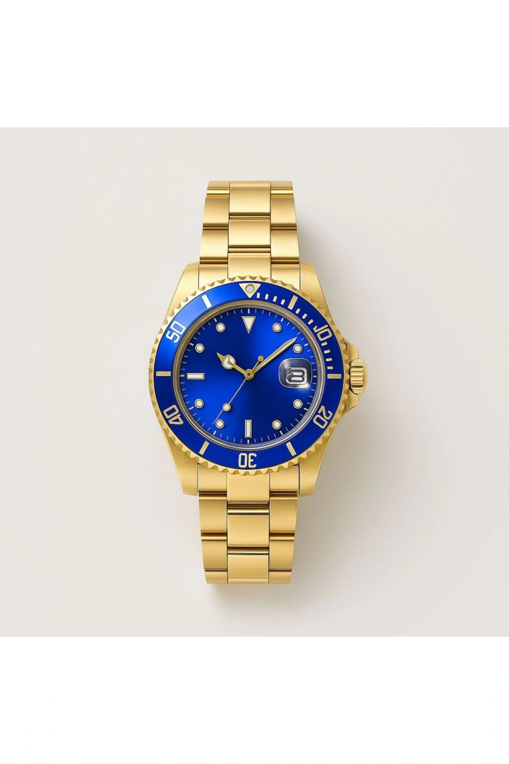 Rodium Erkek Kol Saati Metal Takvimli Paslanmaz Kararmaz Gold - Mavi Kadran