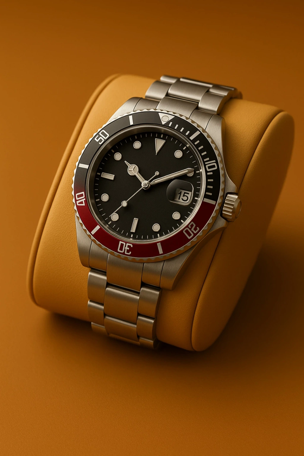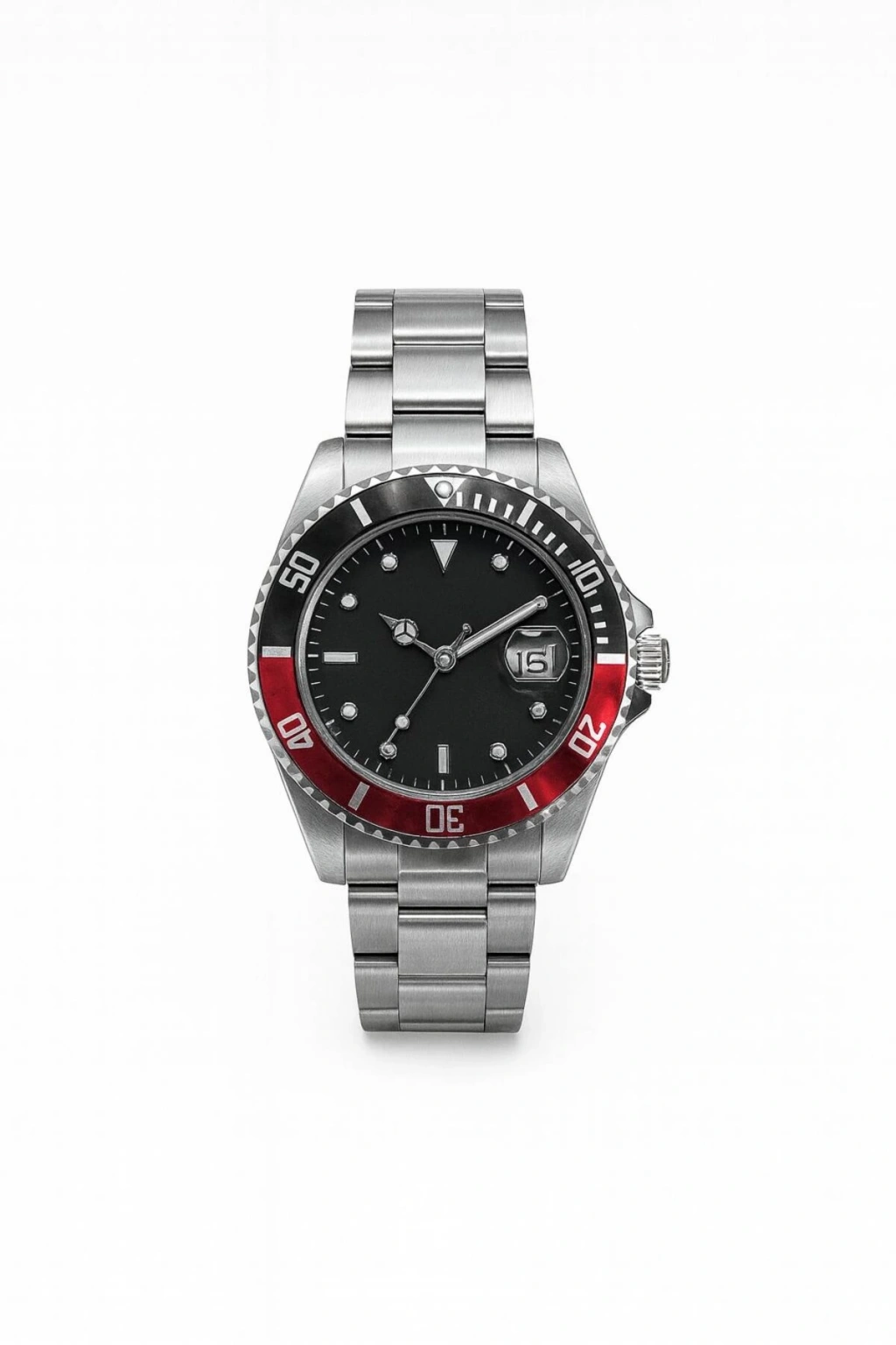 Rodium Erkek Kol Saati Metal Takvimli Paslanmaz Kararmaz Siyah Kırmızı Kasa-Beyaz Kadran