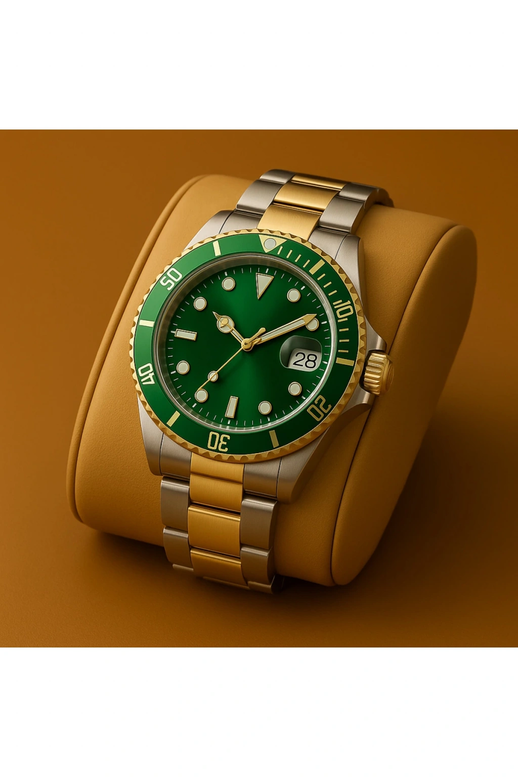 Rodium Erkek Kol Saati Metal Takvimli Paslanmaz Kararmaz Yeşil Kadran