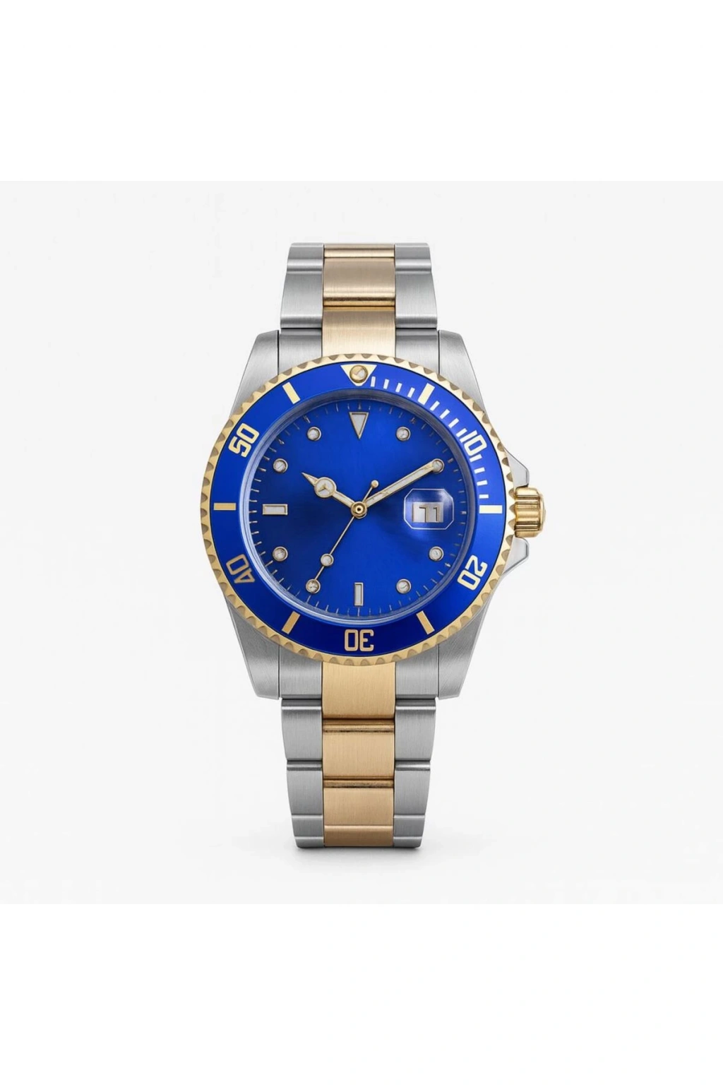 Rodium Erkek Kol Saati Metal Takvimli Paslanmaz Kararmaz Mavi Beyaz Kasa- Mavi Kadran