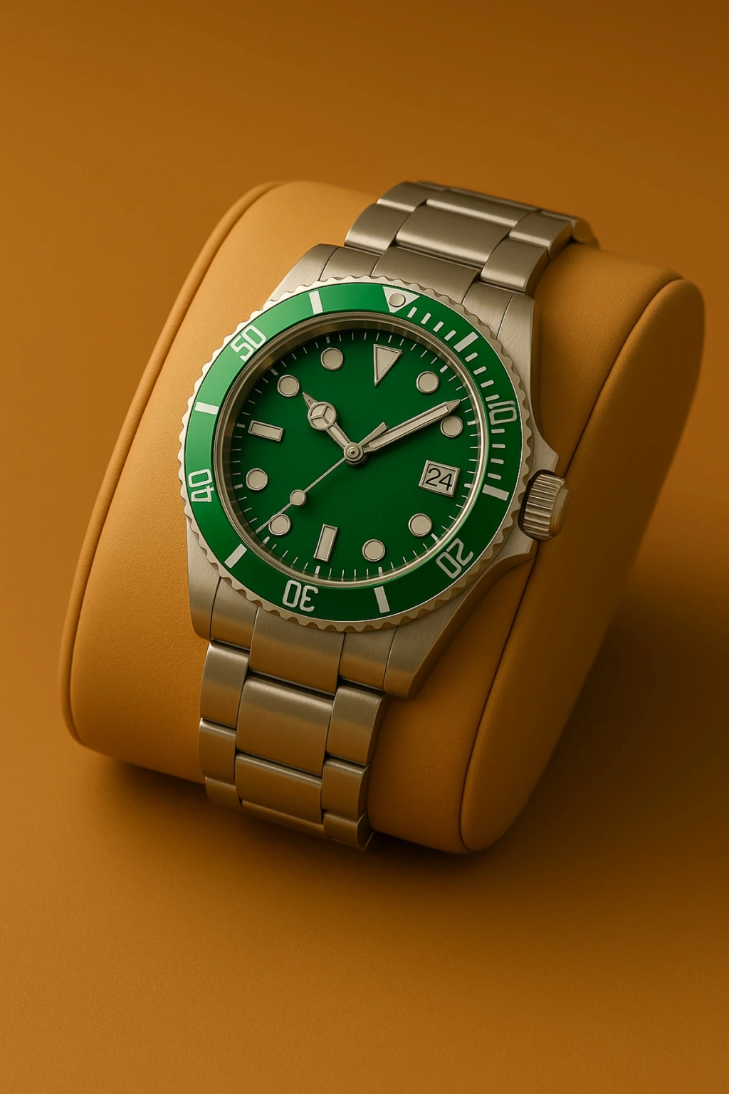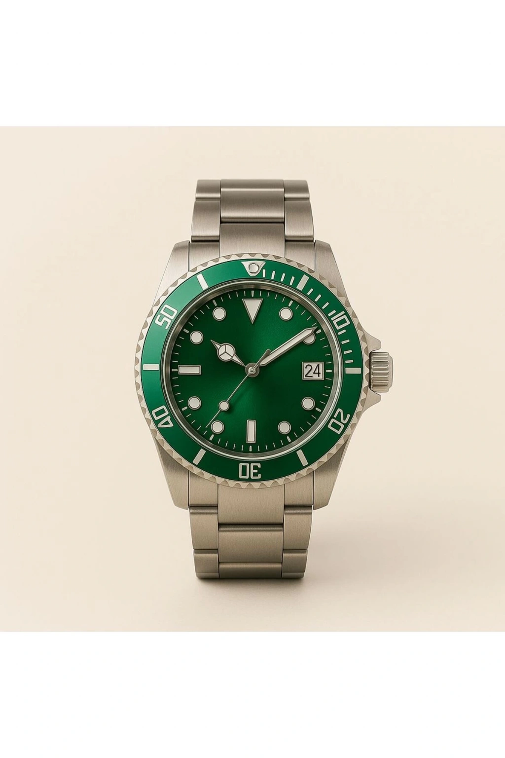 Rodium Erkek Kol Saati Metal Takvimli Paslanmaz Kararmaz Yeşil Çerçeve Yeşil Kadran