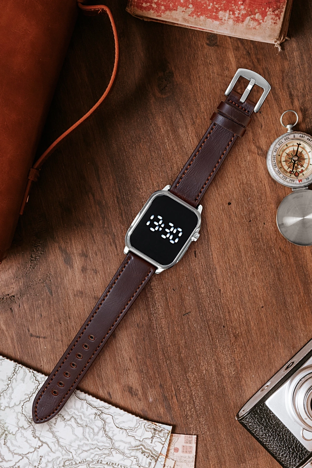 Rodium Led Saat Kayış Kordon Kasa Gümüş (Unisex)