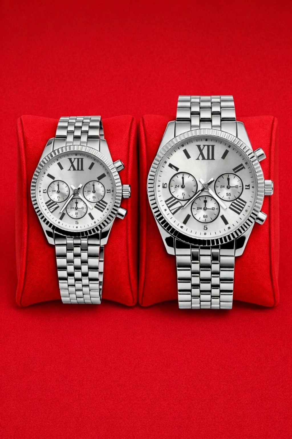 Rodium Sevgiliye Özel Çift Saati Metal Gümüş Renk Kasa Beyaz Kadran